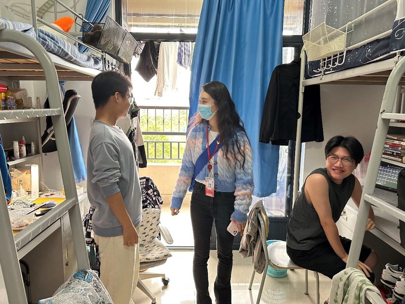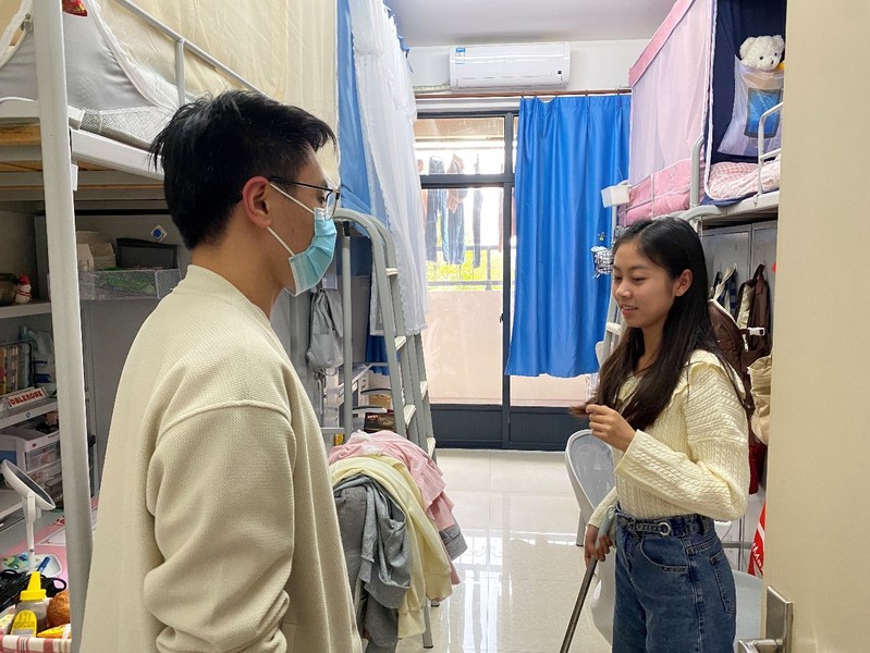 近日,针对疫情发展形势,我校实施疫情防控相应措施。为进一步做好疫情防控期间的学生管理工作,切实解决学生急难愁盼的问题,关注学生的心理健康状态,在校园封闭管理期间,万象城官网学生工作团队多次走进学生宿舍,党总支书记顾斐雯与辅导员姚俊阁、胡雪东、赵乐宏到寝室与学生们进行面对面交流,并通过语通话的方式,与校外学生进行沟通。封校不封爱,公卫学院学生工作团队走进学生的生活和心灵。