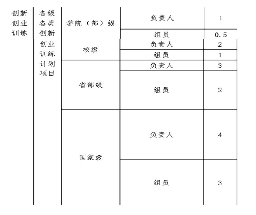 2. 参与项目的同学项目完成后结题成功,可以用大学生创新创业训练项目申请相应的创新创业学分。具体学分如下: