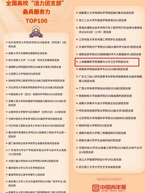 近日,共青团中央、中国青年报公布2022年度高校“活力团支部”评选结果。在校党委的坚强领导下,院党总支和校团委的指导下,自2022年5月以来,万象城allwincity官网团总支经校内选树、上海市标杆活力团支部推选、全国终审等环节,最终获评2022年度全国高校“活力团支部”最具服务力TOP100。