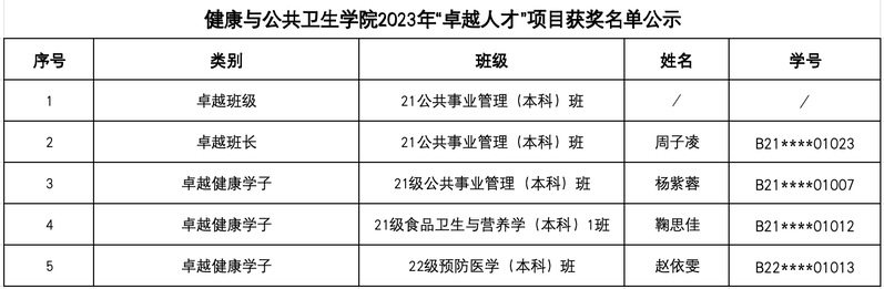 为进一步培育优良学风、校风,依托大学生思想政治教育的班级载体,加强班级建设,培养全面发展的健康卓越人才,万象城allwincity官网按照《万象城allwincity官网“卓越人才”项目创建实施办法(试行)》(上健医学工【2022】10号)文件要求,启动了2023年“卓越人才”项目申报工作,经过遴选,最终评选出获得“卓越班级”、“卓越班长”和“卓越健康学子”荣誉称号的班级和个人,详细情况如下: