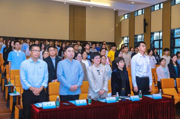 全体师生起立奏唱国歌。在公卫青年说环节,21级公共事业管理专业的周子凌同学作为学生代表,现场就萌新们对学科竞赛、创新创业、志愿服务、社会实践、学生工作等各方面的疑问作出耐心解答。她鼓励学弟学妹们大胆探索,虚心向老师们请教,用切实的行动,以健康的初心守卫人民健康!