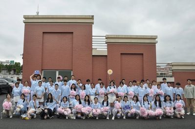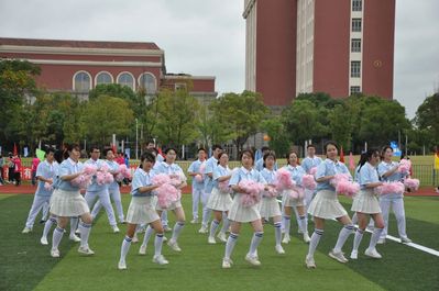 之后进行的团体操表演中,由50名公卫学生组成的方阵,以整齐的队列跑步入场。他们穿着蓝色的统一服装,手拿粉色的花球,跟随着音乐、富有节奏地舞动着,时而变化出花样队形,充分地展现青春的活力与热情。每一个动作,都经过了编舞者精心的设计,每一个舞步,背后都是他们挥洒的汗水。