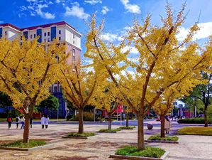秋天的校园总是那么的美丽,大自然也在用它的神奇画笔轻轻的挥动着,银杏树的叶子渐渐变得金黄,为我们呈现出一幅美丽而绚烂的油画。这样的暖色调给我们的校园一角增添了许多光彩,金黄的银杏叶片在阳光下闪烁着,每当走过这银杏树下,你会被树叶的美丽所震撼,被这金黄色的景色而吸引。它们形成一片片金黄的海洋,好像在告诉我们秋天它来啦。