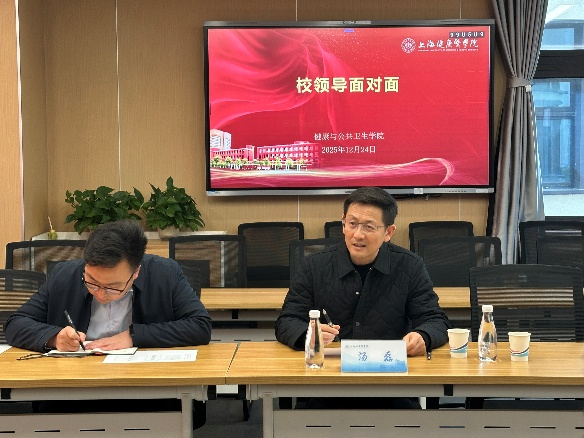 会上,汤磊副校长亲切询问学生学习生活情况。与会学生们踊跃发言,主动分享专业感悟与发展构想。他认真聆听,并立足学校人才培养全局,围绕课程体系优化、职业发展指引等方面逐一回应,勉励学生尽早树立职业规划意识,主动对接行业前沿,把握公共卫生专业核心属性;同时建议学生理性规划考研与就业,提醒有深造意向的学生提前谋划、科学选校。