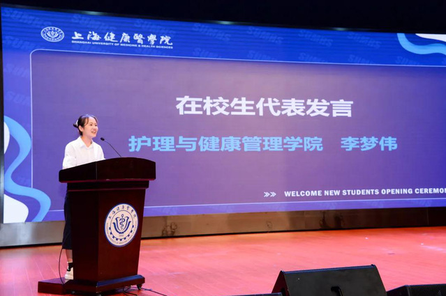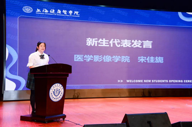 医学影像学院的宋佳旎同学作为2020级新生代表发言。她说到,作为一名医学新生要努力适应环境,融入环境,用自律和努力,握着由目标为燃料熊熊燃烧的火种,向着未来勇往直前。要互相学习,互相激励,共同探究,共同进步,用努力和实践一步步向前。作为新一届的上健医人,相信大家未来四年的大学生活会因自己的成长蜕变而更加充实圆满,会因自己的奋进探究而更加精彩纷呈。寒窗苦读为梦想筑基,满腔热血为梦想启航,希望大家为不忘今天许下的初心,在未来的日子里努力奋斗,刻苦学习!