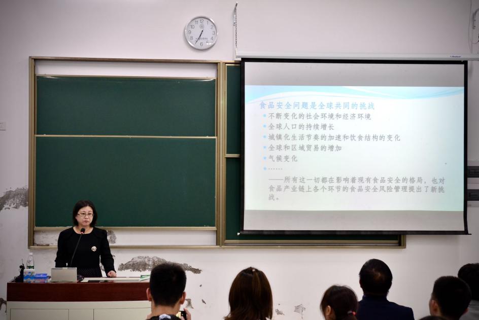 王玲科长通过“国际国内食品安全形势”、“我国食品安全保障现状”和“食品安全保障体系展望”三个专题介绍食品安全保障体系的现状与未来,她重点介绍了食品安全问题在各国的发展与演变、食品安全追溯制度、食品安全社会共治模式等,特别是强调了过去是卫生、现在是质量安全、未来是健康营养的食品安全需求。