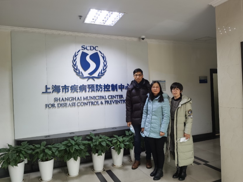 2020年12月16日下午,万象城allwincity官网陈泓书记、那立欣副院长、陈新副院长和曲春波老师一行四人到上海市疾病预防控制中心进行访问、交流,疾控中心合作交流培训处处长袁东等与学院领导老师进行了研讨。