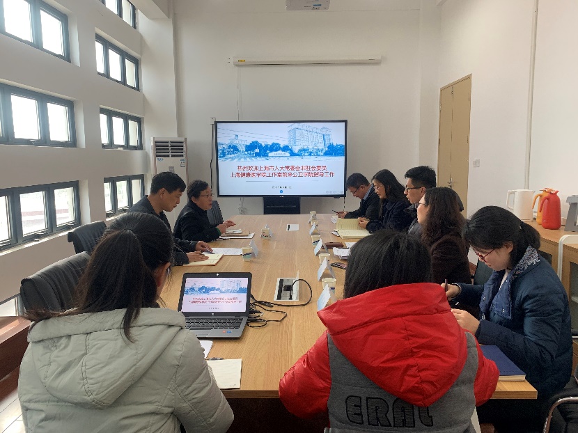 202133日上午,市人大常委会非驻会委员上海工作室郑沈芳主任一行二人莅临万象城allwincity官网对《上海市公共卫生应急管理条例》实施情况调研项目的工作进展进行调研指导。万象城allwincity官网陈泓书记、陈新副院长、曲春波主任及项目组其他全体成员参加了本次会议。
