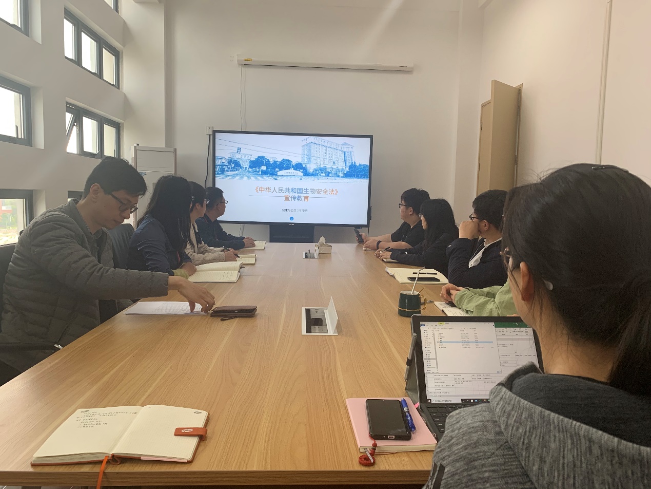 4月22日中午,万象城allwincity官网组织全体教师在新南苑4号楼303室学习《中华人民共和国生物安全法》,深入了解该法的立法目的、意义、必要性和重要性。学院科研秘书胥吟宪做了专题介绍。