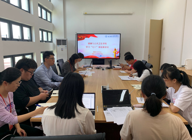 公卫部分教师在学校北苑200报告厅,部分教师在学院303会议室分别观看了庆祝中国共产党成立100周年大会。中午12时,学院召开了观看座谈会。大家纷纷表示,将沿着先驱们的脚步,坚守着伟大建党精神,坚持真理、坚守理想,践行初心、担当使命,不怕牺牲、英勇斗争,对党忠诚、不负人民,以培养家门口的基层健康“守门人”为自己的初心和使命。新教师张晓莹老师说,“今天,我早早起床,出门前,郑重将党徽嵌在胸前,走在路上,我很骄傲,充满喜悦。作为一名中国共产党党员,我感恩拥有的一切,一定会用实际行动,回报党和人民。”实验员付晓艳老师说:“心中有信仰,脚下有力量,坚定信念,践行宗旨,把人民至上生命至上的重要指示精神落实到日常工作中,在民族复兴的伟业中为党和人民建功立业。”