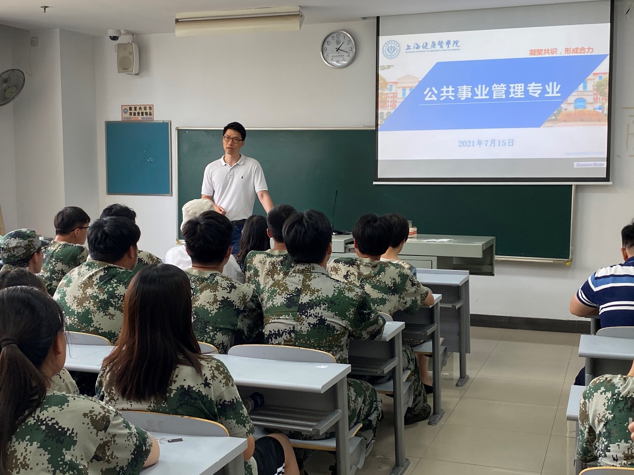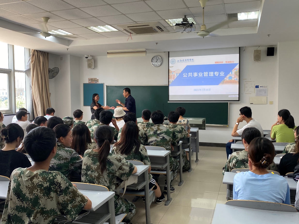 2021年7月15日下午在北苑2号楼301教室,学校为20级公共事业管理本科班全体同学召开了一场生动有趣的专业分享解读会。学校教务处处长王莉、护理与健康管理学院党总支书记汤磊、万象城allwincity官网党总支书记陈泓、副院长那立欣(主持工作)、副院长陈新、后勤管理中心膳食科科长黄晓波,以及公共事业管理教师团队王欣国、张蕊、李家兴、张晓莹等教师,与同学们面对面,共同分享人才培养定位、专业课程体系、职业生涯发展等。由辅导员胡雪东老师主持分享会。