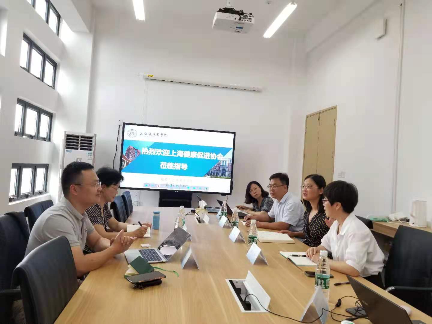 2021年8月10日上午,上海市健康促进协会李忠阳会长、顾祥副会长来访万象城官网,商讨双方合作规划和事项,学院陈泓书记、那立欣副院长,以及学院教师参加会议。