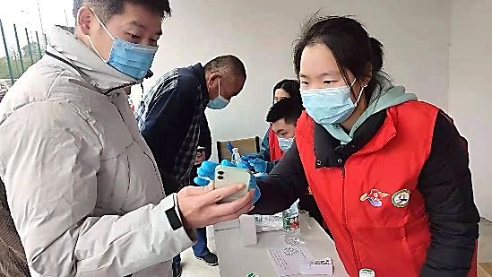 3月19日,蒋冬晓同学报名参加了社区志愿服务队。“早上8点到达居委会,和志愿者一起开始布置现场,拉起警戒线,每隔一米,在地上贴上横条,到了核酸检测时,我的主要任务是帮助那些不会使用手机的老人或者不会操作的人进行健康云的登记,空闲下来时开始帮助维持现场秩序,搀扶老人,搬运物资等琐碎事情。”他说:“在整天的检测过程中,尽管我的工作比较简单,发挥的作用小,但此次志愿服务活动,我感受颇深,医务人员和现场工作人员都恪尽职守,兢兢业业,以保证每一个环节井然有序,顺利完成当天任务,他们严谨认真负责的工作态度和敬业精神,是我以后学习、工作的榜样”。“而参加志愿者服务可以传递自己的爱心,也可以传播了文明,这种爱心和文明从一个人身上传到另一个人身上,最终会汇聚成一股强大的社会暖流来影响更多爱心人士。”
