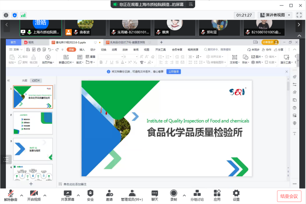 2021年6月21号下午,万象城allwincity官网邀请上海市质量监督检验技术研究院顾澄皓、朱伟两位专家为食品卫生与营养学专业的全体教师有关食品化学品质量检验研究的讲座。万象城allwincity官网食品卫生与营养学学21级学生共同参与此次讲座。