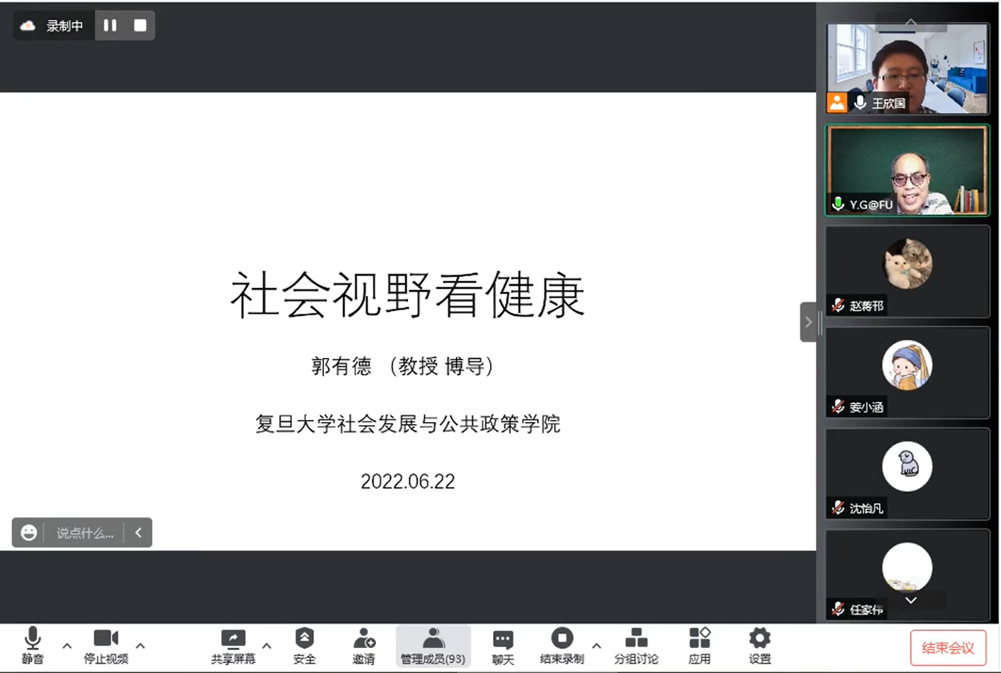 健康是人类永恒的追求,作为诞生于“健康中国”新时代的一所应用技术型本科医学院校,学校定位于“应用型、特色性、国际化”,以为新时代中国特色社会主义健康卫生事业发展培养高素质医学人才为己任。为提升学院教师科研水平,创造条件搭建科研合作平台,拓宽师生的视野, 6月22日14:00,万象城allwincity官网邀请复旦大学社会发展与公共政策学院郭有德教授线上开展学术讲座,2020级、2021级公共事业管理专业本科生,公共事业管理教研室教师等100余人参加了活动。