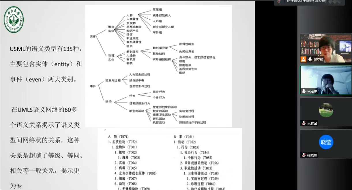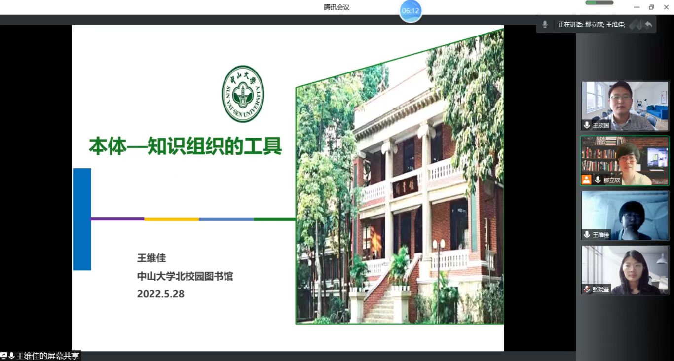 知识图谱,又称知识域可视化或知识领域映射地图,是显示知识发展进程与结构关系的一系列各种不同的图形。知识图谱在医学领域中的应用是近年来的研究热点。为了解这一领域的研究进展,为下一步科研课题申报、研究论文撰写寻求新的研究热点,2022年5月28日下午,万象城allwincity官网诚邀中山大学北校园图书馆王维佳老师云端授课,那立欣院长主持讲座,公共事业管理专业部分教师参加了研讨。