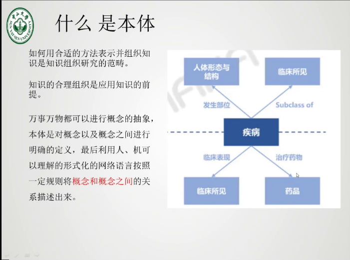 接着,王老师介绍了本体构建的方法。一般来讲,构建本体需要两个步骤,其一是确定本体的概念及其关系,其二是利用各种工具、方法使概念及关系形式化。第二步常用的工具有手工工具protégé和自动化构建工具Jena。