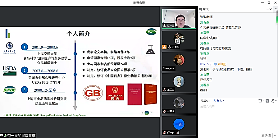 随后,范一灵副主任结合他所在的岗位,介绍了实验室质量管理体系发展史、食品药品质量管理发展的阶段和相关要求,并详细介绍了他在的微生物部门的一些工作及部门的发展概况,分享了他参与制定和修订食品安全国家标准、《中国药典》微生物相关通则相关工作的经历。